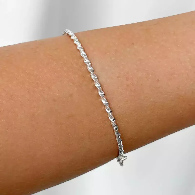 Bracelete em Prata 925 com design torcido, elegante e atemporal. Uma peça minimalista que transmite sofisticação e estilo, perfeita para uso diário ou para compor produções mais sofisticadas. Pode ser usado sozinho ou combinado com outros acessórios.