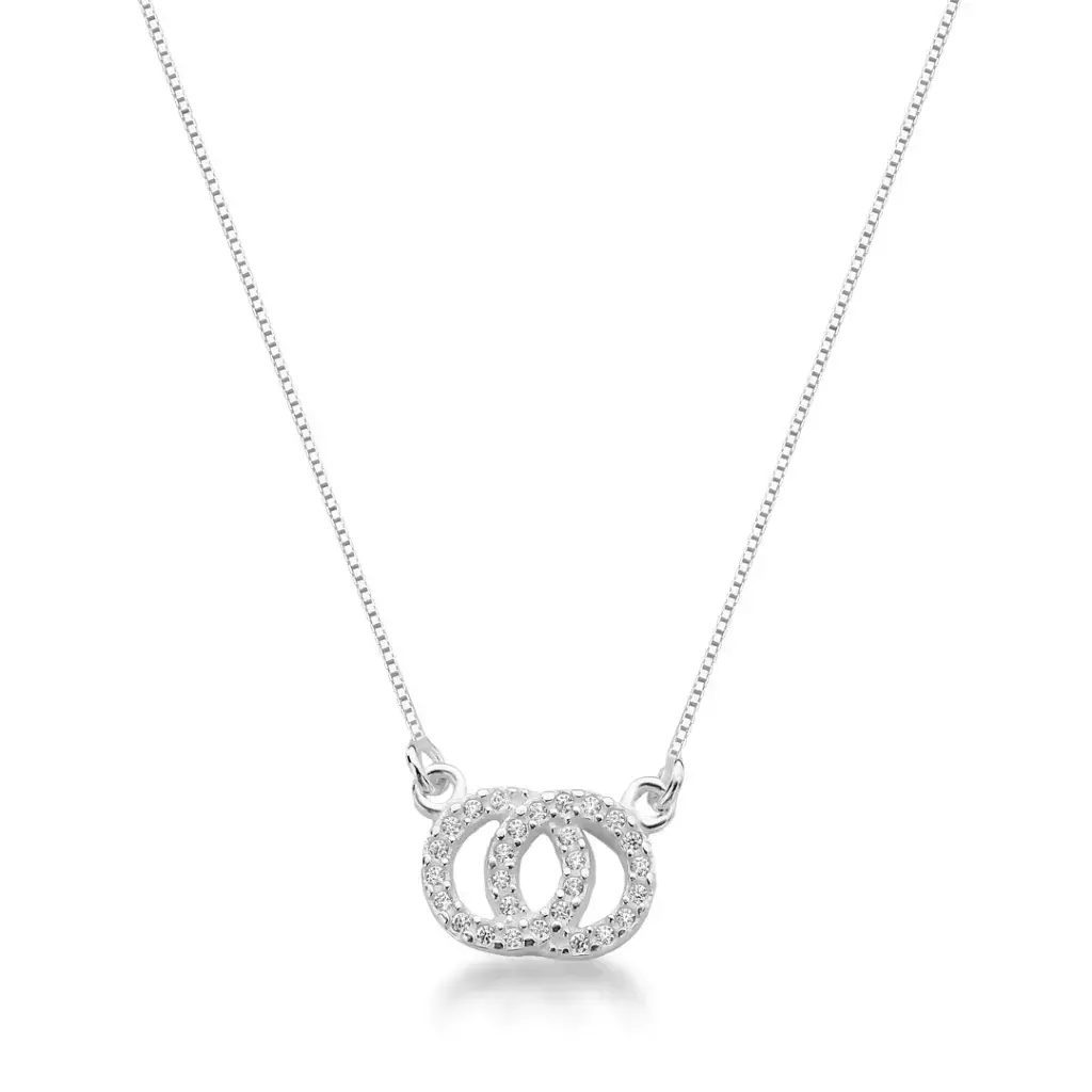Gargantilha em Prata 925 com pingente de dois círculos entrelaçados, representando união e equilíbrio. Uma joia moderna, delicada e versátil, perfeita para compor diferentes combinações e valorizar qualquer look.